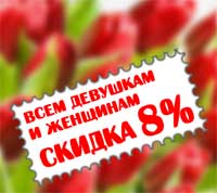 В честь праздника 8 Марта для женщин действует скидка 8 % с 6-7 марта.